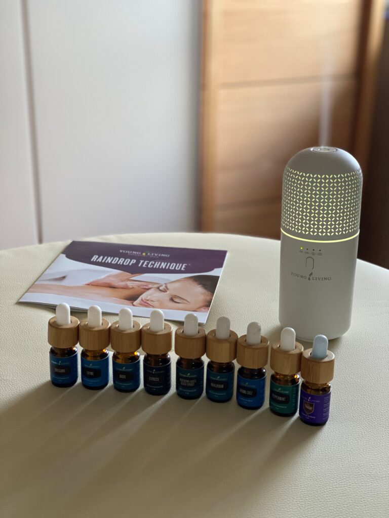 Die Qualität der ätherischen Öle, die bei der Anwendung verwendet wird, ist sehr wichtig, daher wird die Raindrop Technique nur mit 100% naturreinen ätherischen Ölen von Young Living durchgeführt.
